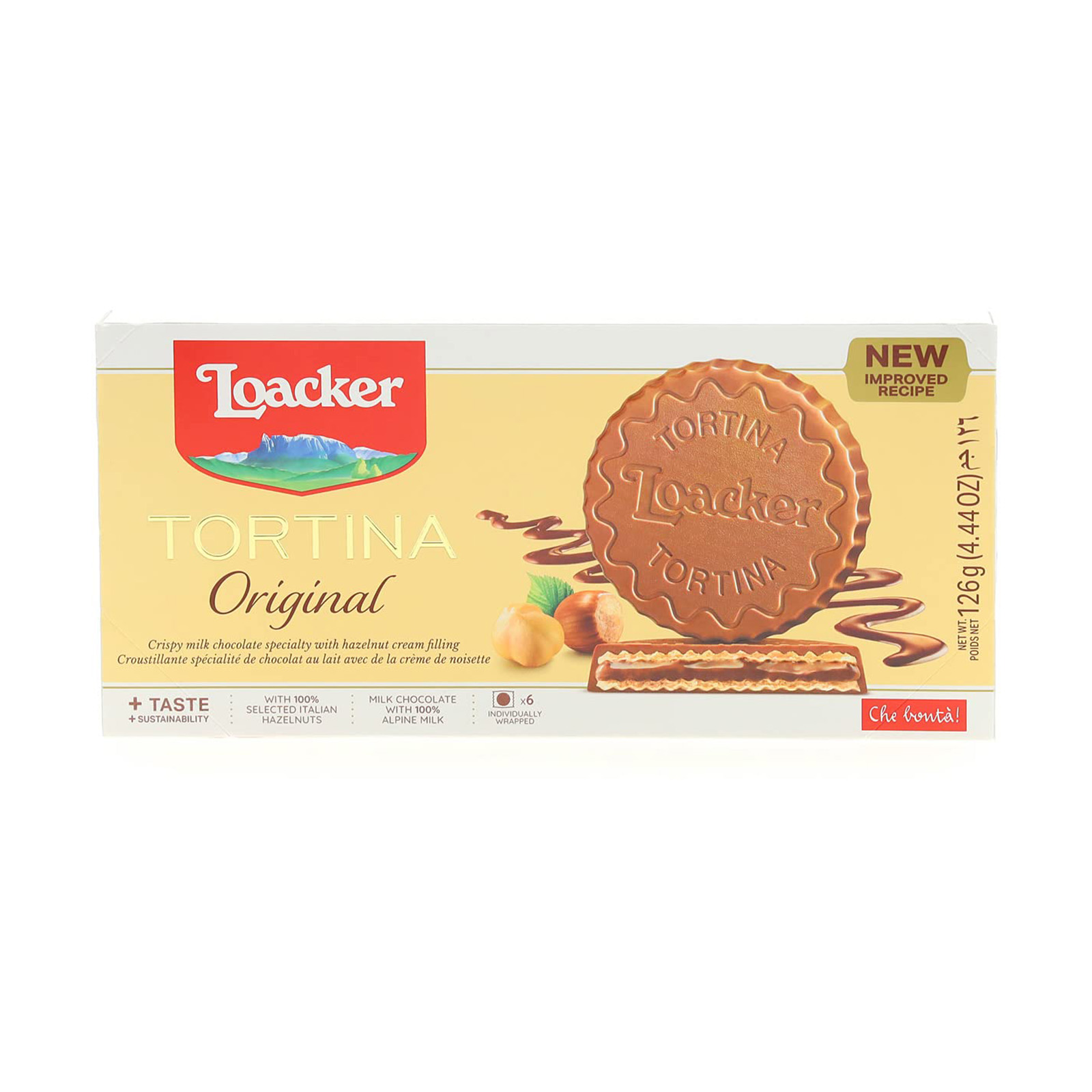 Loacker Tortina Original Chocolate Wafer is a premium Italian confection featuring crisp wafers filled with smooth hazelnut cream and coated in rich milk chocolate. Made with carefully selected ingredients, this indulgent treat delivers a refined balance of crunch, creaminess, and chocolate richness. Individually wrapped for freshness, it is perfect for a moment of indulgence or sharing with others.