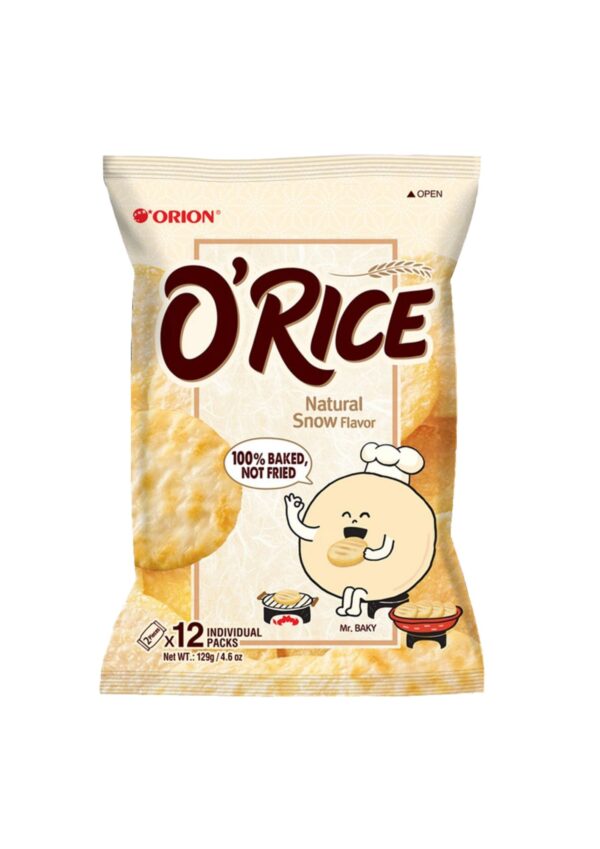 Orion O’Rice Natural Snow Rice Crackers are light, crispy rice snacks made from carefully baked rice for a clean and satisfying crunch. With a mild, natural snow flavour, these crackers offer a subtly savoury taste that is easy to enjoy anytime. Baked rather than fried, they are portioned into convenient individual packs, making them ideal for everyday snacking or sharing.